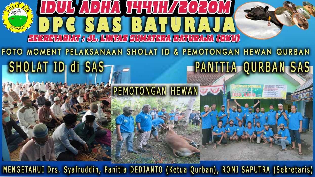 Adapun Perayaan sedikit kendala dengan adanya Pademi Covid-19 sudah tentu Panitia DPC SAS Baturaja mengikuti aturan Protokol Kesehatan dengan melaksanakan sesuai anjuran pemerintah, mulai dari Sholat Id sampai dengan selesainya pembagian daging Hewan Qurban yang mana data pembagian tersebar Rata dengan rincinan sebagai berikut :